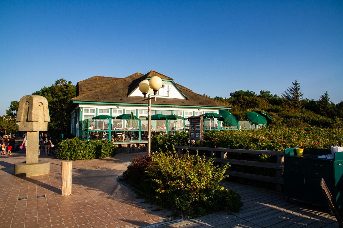 Genießen Sie die gepflegte Atmosphäre, Speisen und Getränke bei einem herrlichen Sonnenuntergangspanorama oder bei sturmgepeitschter See.